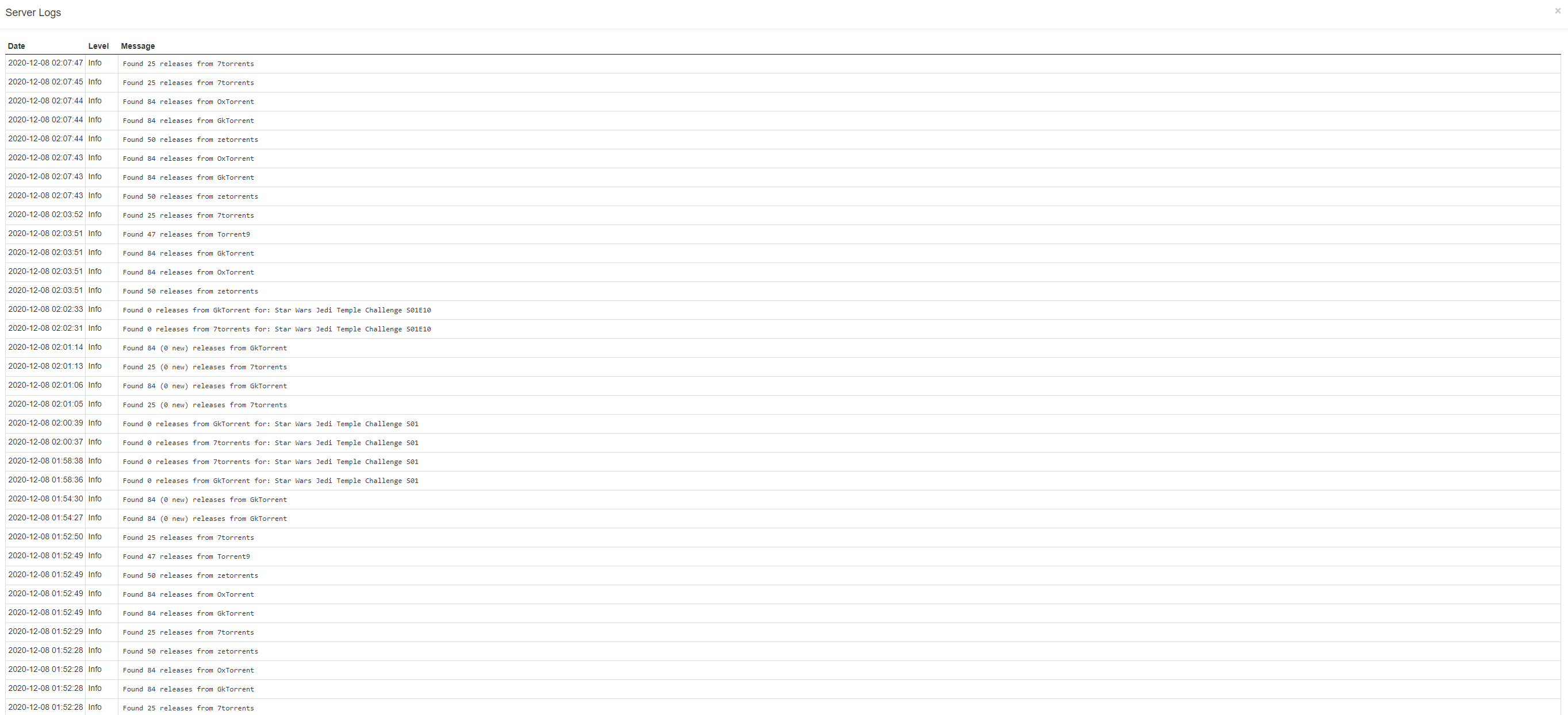 20-12-10 20:01:19.2|Info|SeasonSearchService|Season search completed. 0 reports downloaded.