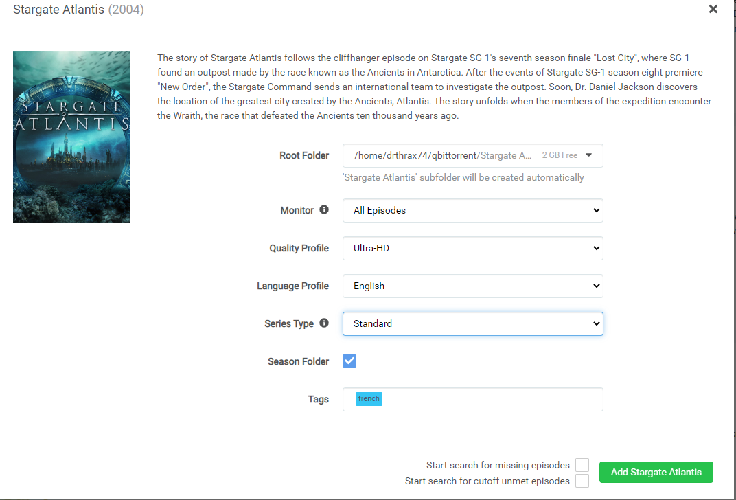 Est ce qu'il y a un paramètre pour qu'il cherche la release en complet et pas par saison ? (Je penses que c'est sa mon soucis)