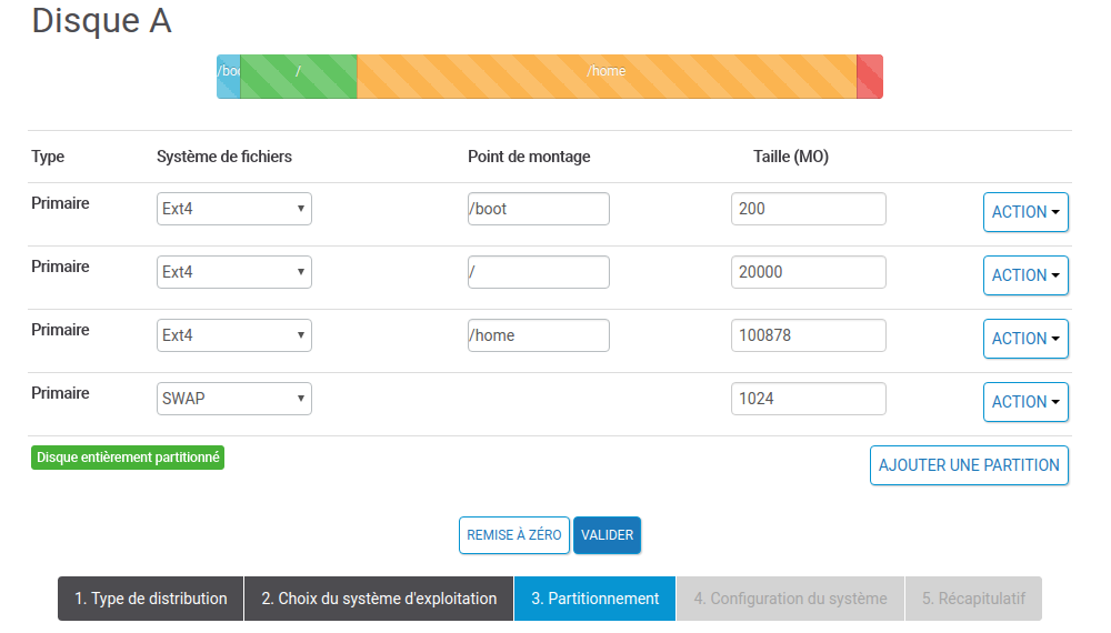 Il faut que ça ressemble à ça (la taille du /home sera plus grande chez toi que sur ma caps):